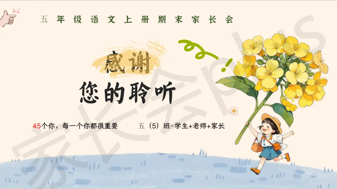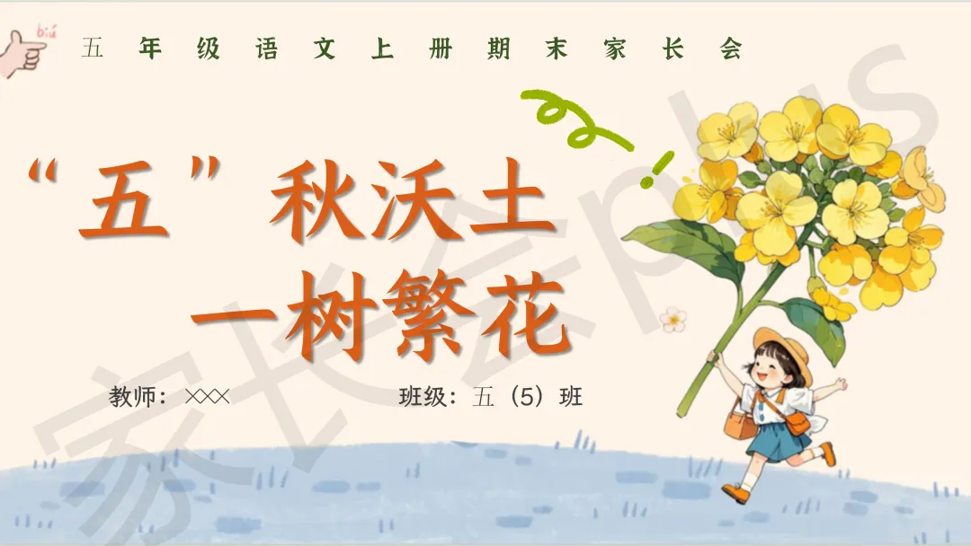 小学五年级语文秋季上学情期末家长会 PPT 课件《“五”秋沃土,一树繁花》模板推荐(附配套发言稿)。