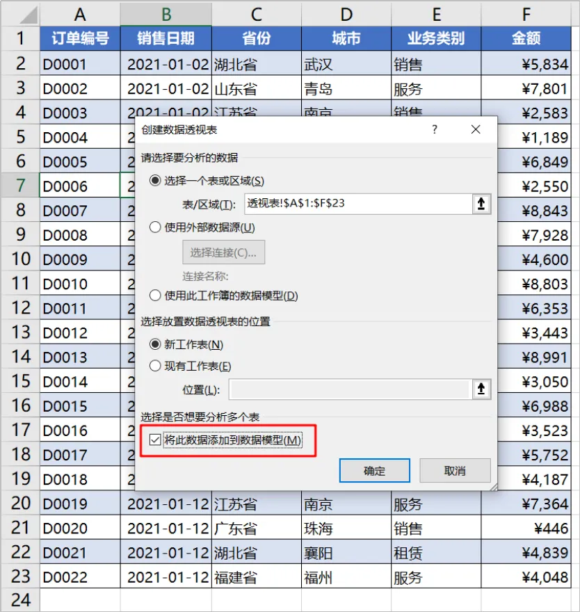 其实,特别简单,只需勾选“将此数据添加到数据模型”即可。