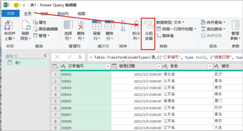 进入PQ编辑器,点击“分组依据”进行分类汇总
