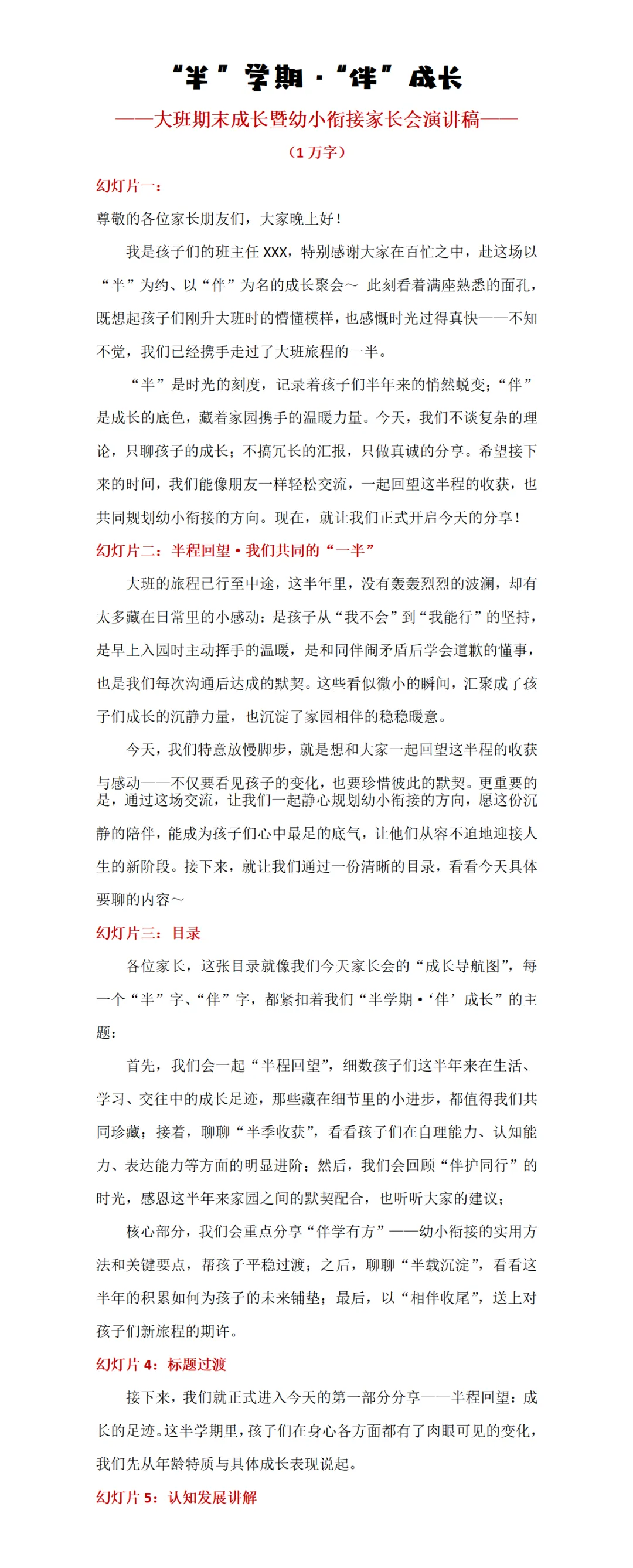 大班上学期期末家长会(半学期伴成长)PPT+发言稿