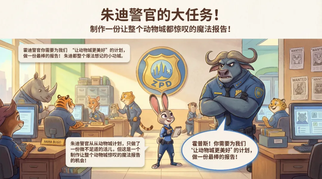 Create infographic-style slides that transform complex information into visual stories.Use a cohesive color palette with 4-5 colors: one primary, two secondary, and accent colors for highlights.Feature abundant custom icons, pictograms, and symbolic illustrations. Include diverse chart types: pie charts, bar graphs, timelines, flowcharts, comparison tables, and process diagrams.Use visual metaphors and illustrated concepts. Typography should be bold and scannable with clear size hierarchy. Each slide should tell a complete visual story with minimal text and maximum visual communicationCreate slides in Disney Zootopia 2 animation style. Apply soft edge lighting, smooth shadow rendering, warm harmonious color palette, subtle fur texture details at light edges.Feature expressive anthropomorphic animal characters in professional settings - animals in business attire, working in offices, giving presentations. Use clean studio-style backgrounds with soft blue gradients. Character designs should have Disney-level quality with expressive shapes and friendly expressions. Typography should be rounded, friendly sans-serif fonts. High resolution, cinematic color grading. Overall mood: professional yet approachable, warm, optimistic. Each slide should feel like a promotional art piece from the movie.