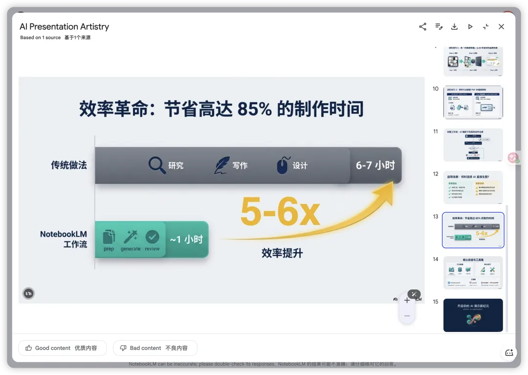 当时觉得Gamma已经是天花板了,没想到现在被NotebookLM超越了。