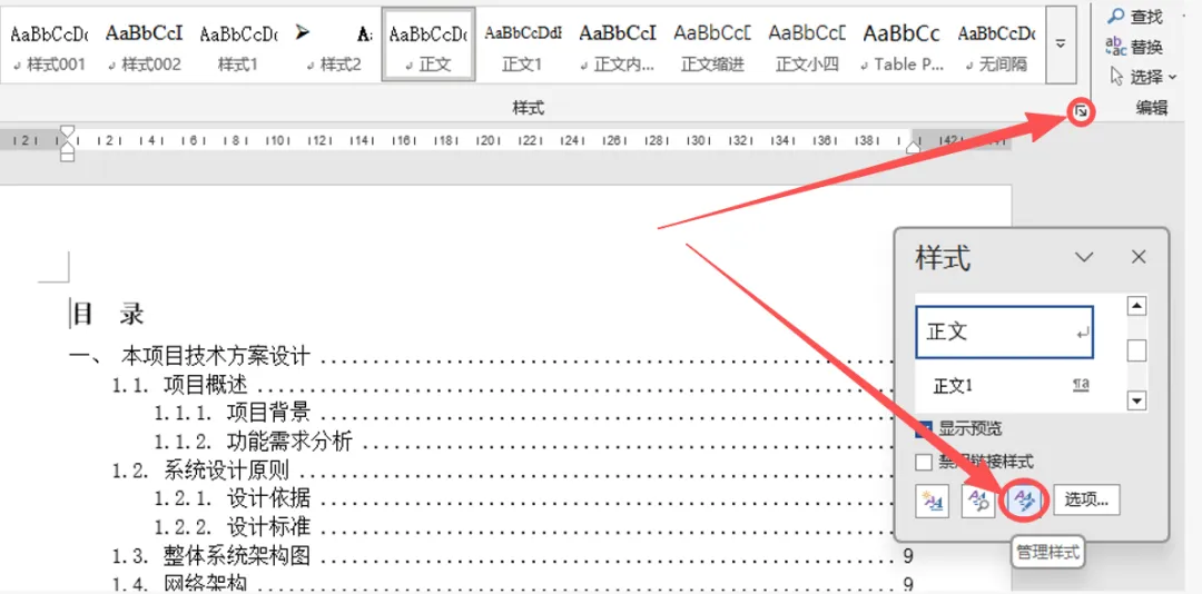1、点击 样式 右下角的小箭头 (或 Alt+Ctrl+Shift+S),点击管理样式;