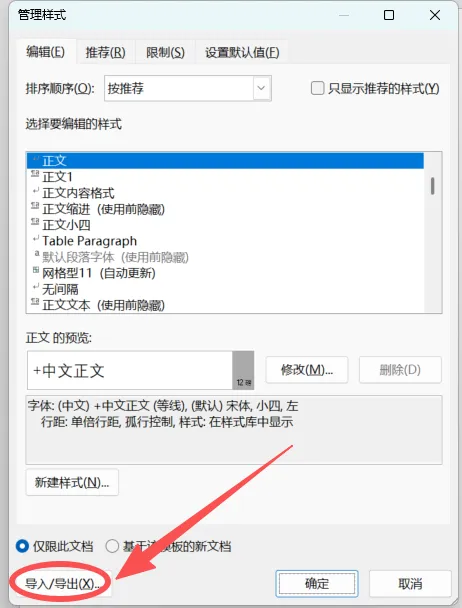 2、进入管理样式后,我们选择编辑,点击 导入导出,然后会进入管理器;