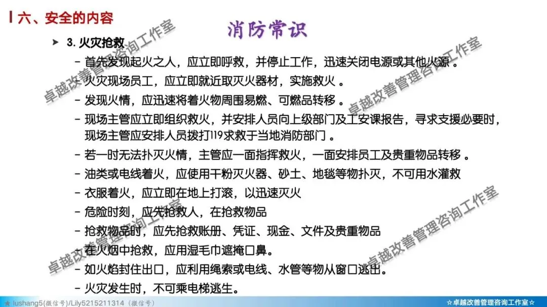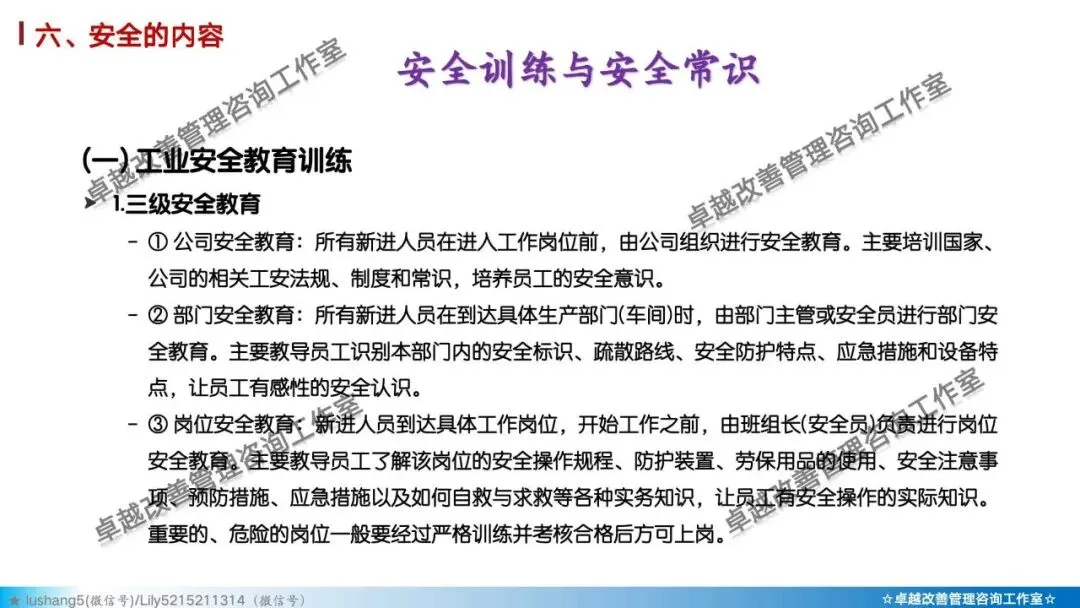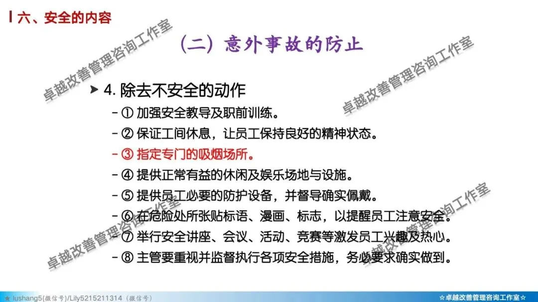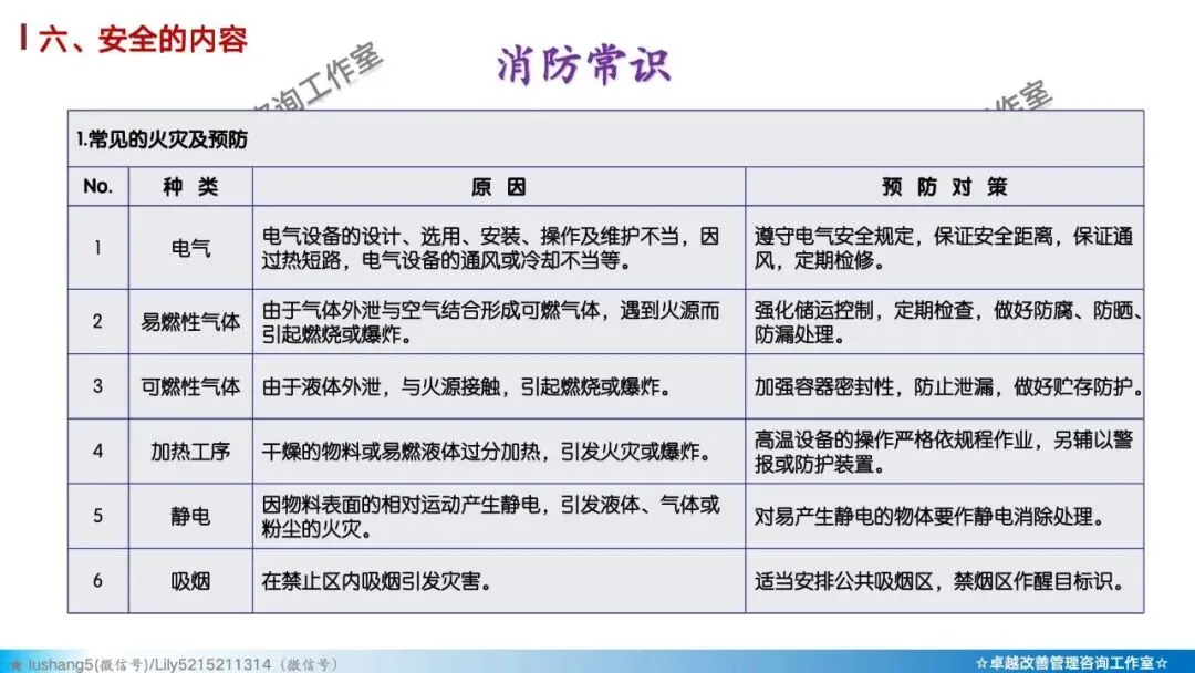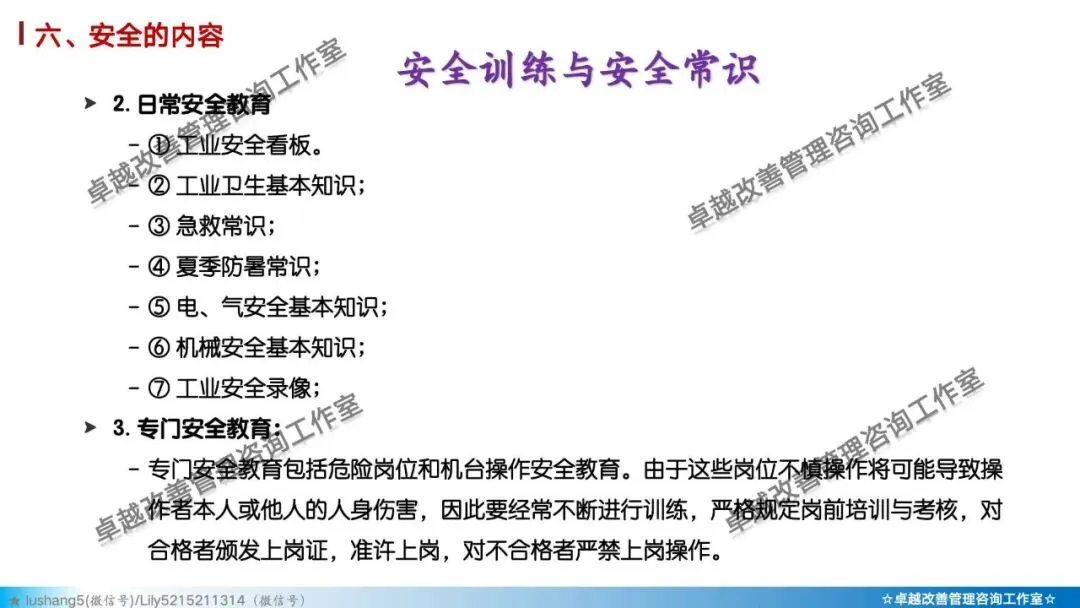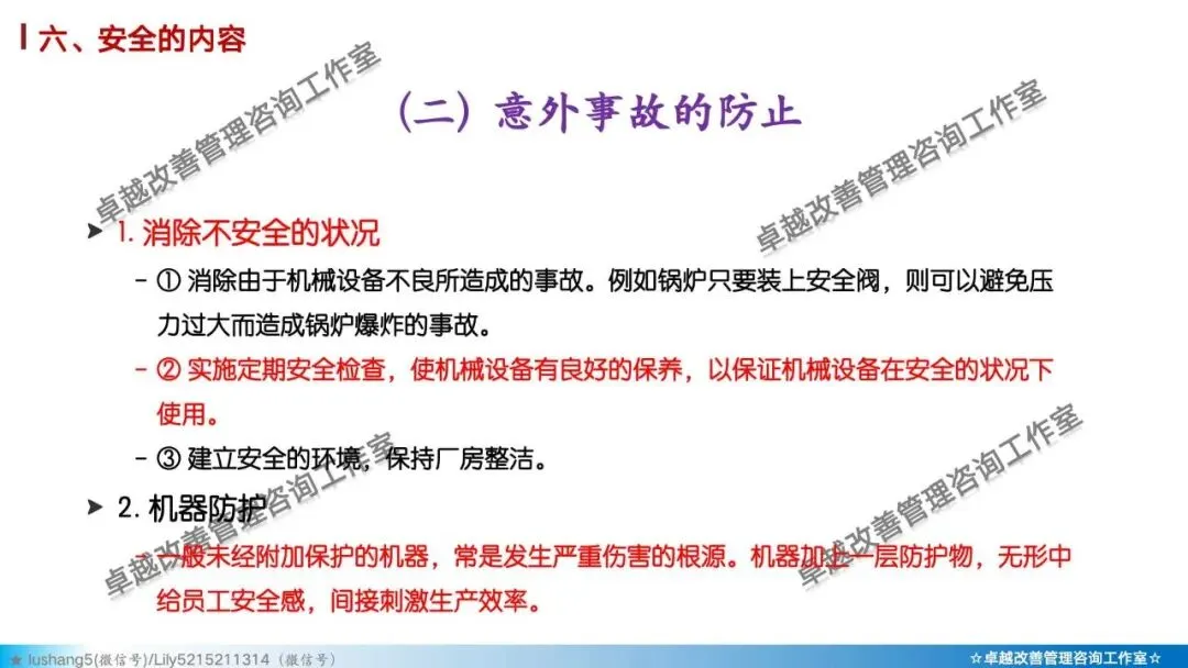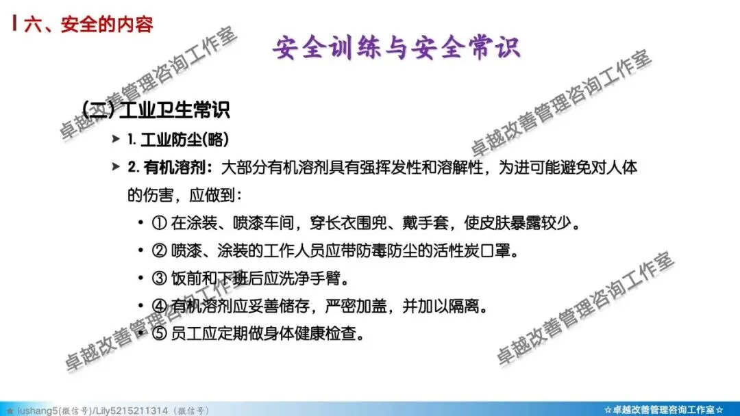 5)素养 + 安全: 培养员工的安全意识与安全行为习惯。如正确穿戴PPE(个人防护装备)、遵守安全操作规程、主动报告不安全状况。