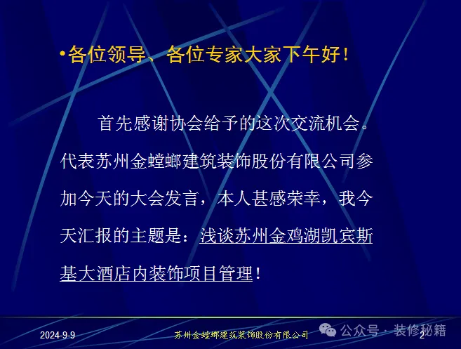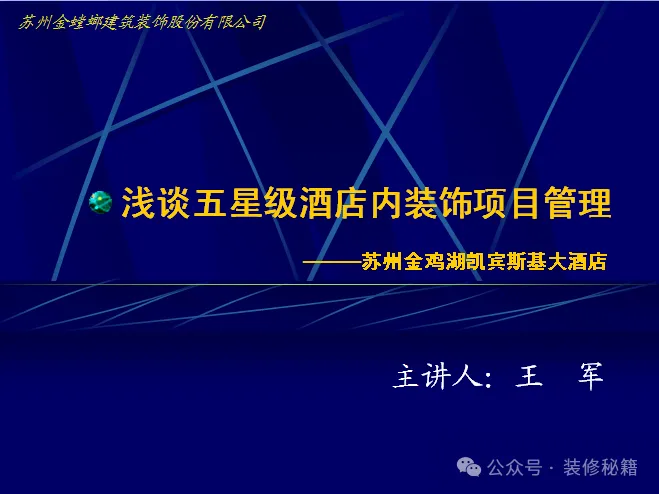 《金螳螂装饰:苏州金鸡湖酒店装修工程项目管理经验总结》