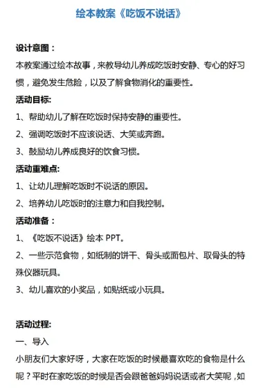 幼儿园语言领域公开课——《吃饭不说话》PPT+教案分享