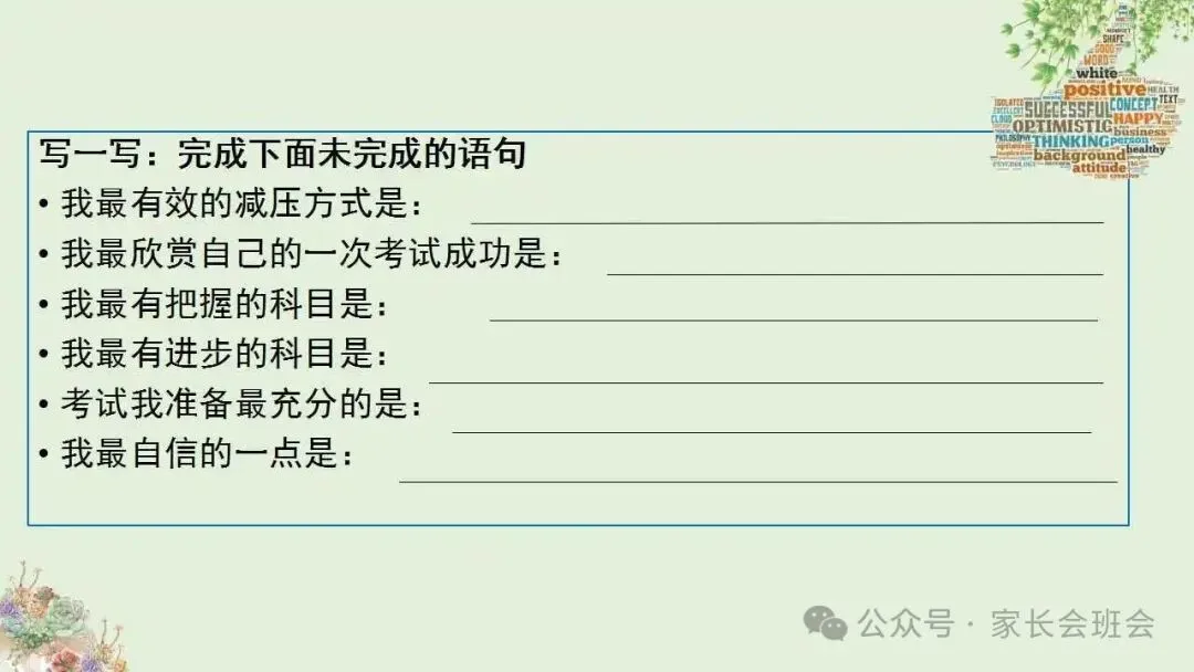 >期末考试调节主题班会ppt:战胜期末考试焦虑,不做期末焦虑人.含视频