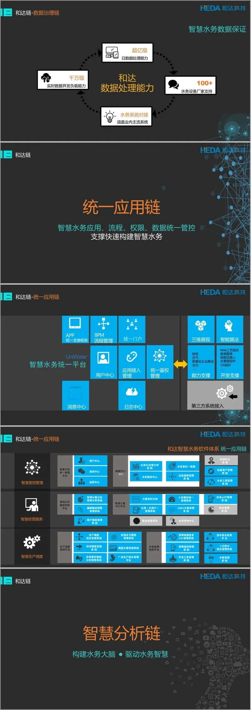 综上所述,这份文件清晰地勾勒出HEDA和达科技如何通过“和达链”这一综合性框架,系统性地驱动水务行业的智慧变革。它不仅仅是一套技术方案,更是一种融合了先进技术、深度业务理解、严格质量控制和持续服务生态的完整方法论,为水务企业应对当前挑战、实现可持续发展提供了颇具价值的路径参考。