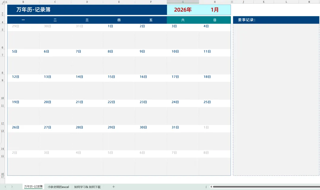【excel动态万年历(无农历)