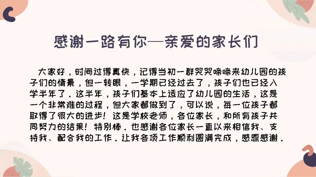 3、幼儿园上学期中班期末家长会PPT《中班旅途已过半!》发言稿