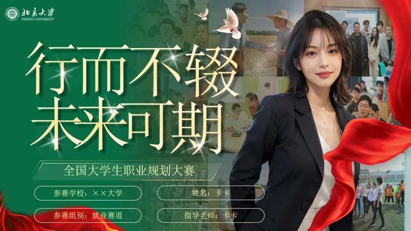 [PPT类型] 职业生涯规划参赛PPT模板[网盘分享链接]通过网盘分享的文件,复制链接打开百度网盘app即可获取:链接 https://pan.baidu.com/s/1AEUT5HXyHQT4q60Zalm8bQ?pwd=w4h8 提取码: w4h8