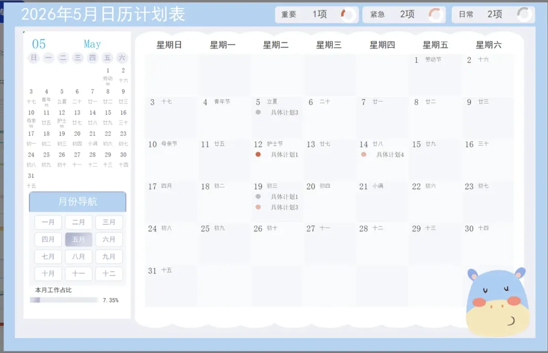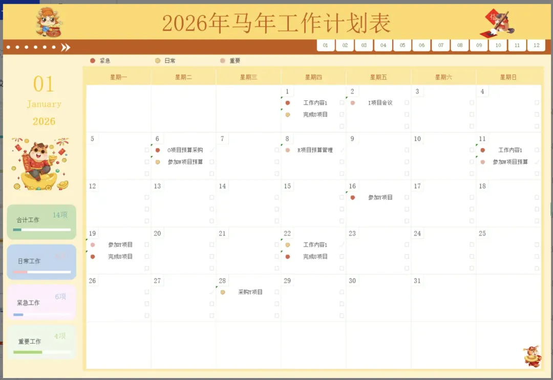 【10套】2026年马年日历工作计划表Excel模板