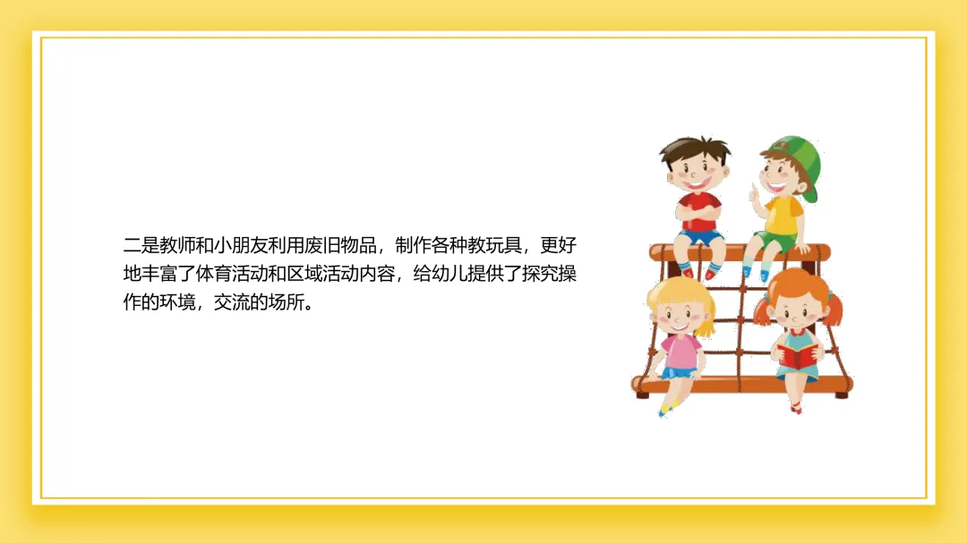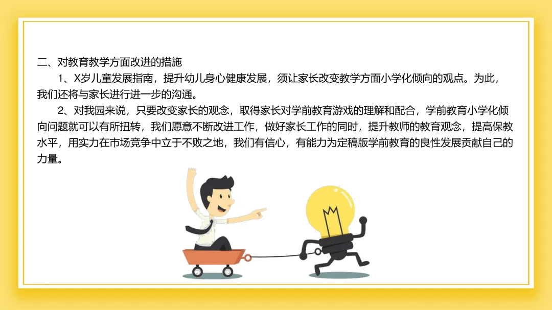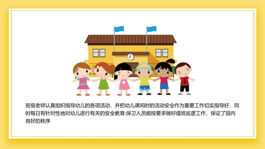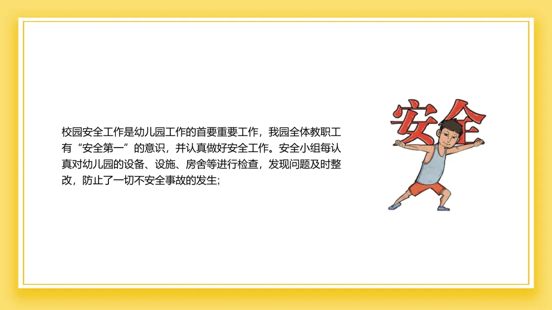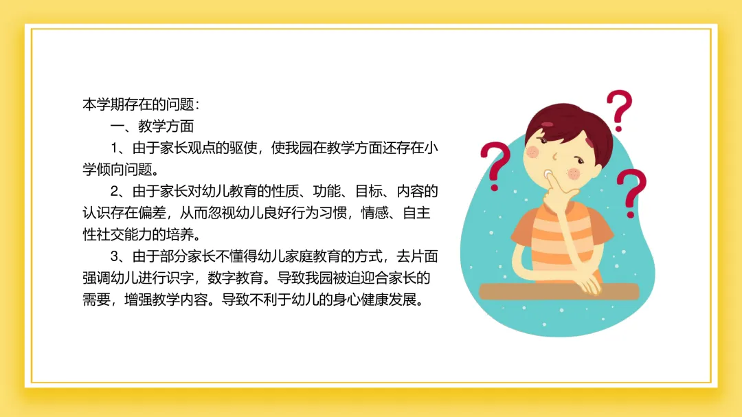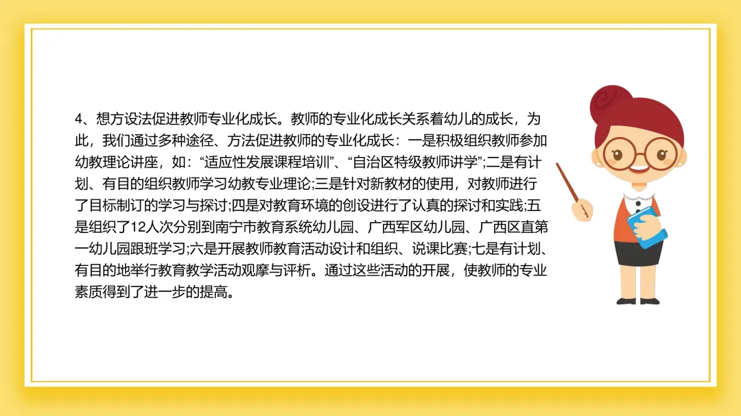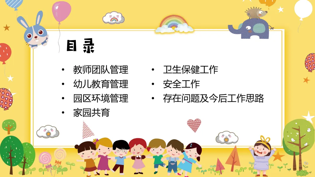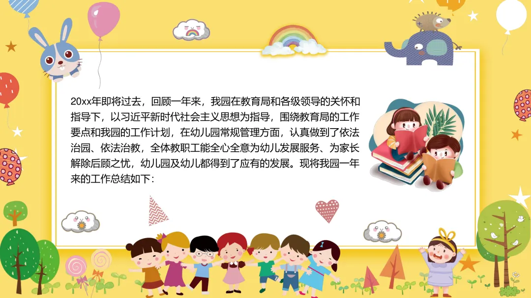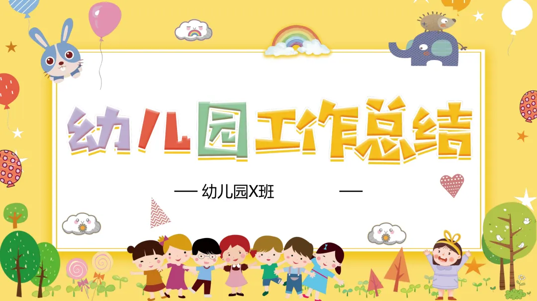 黄色卡通版幼儿园工作总结汇报PPT课件