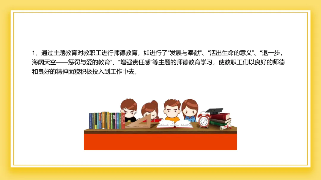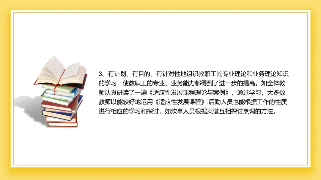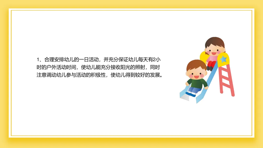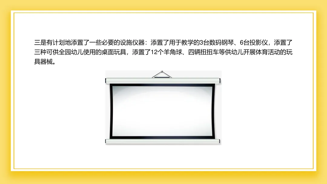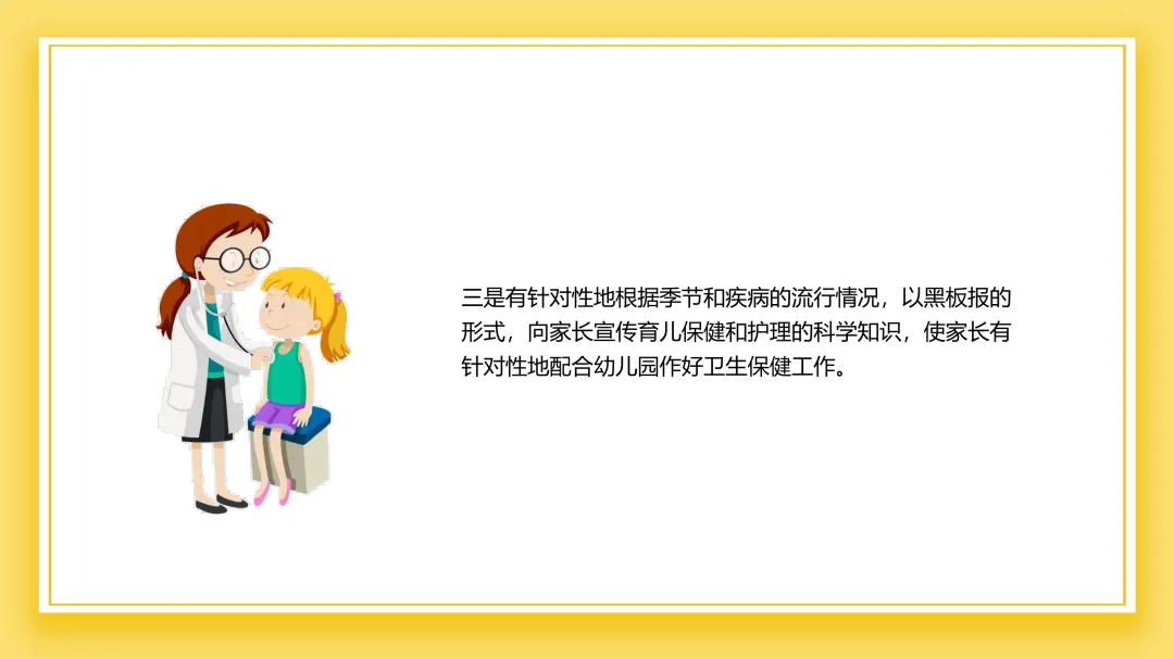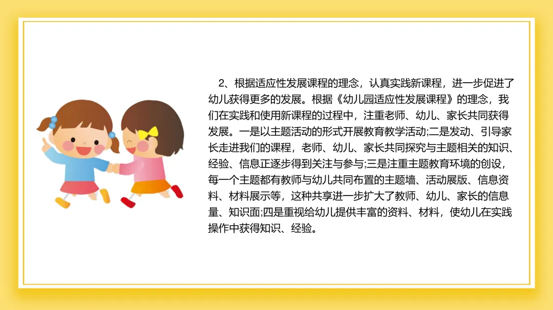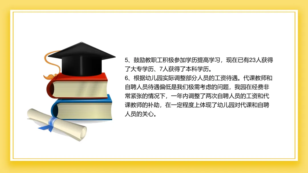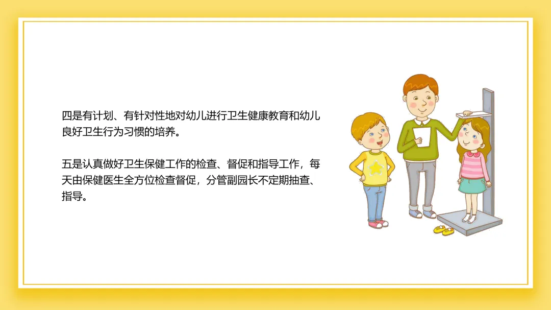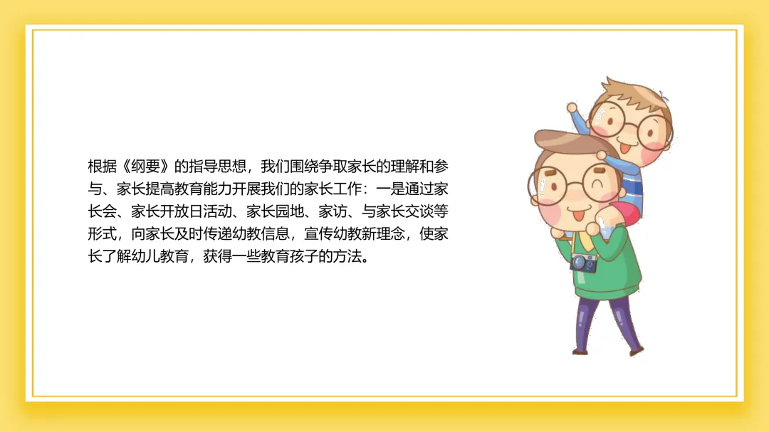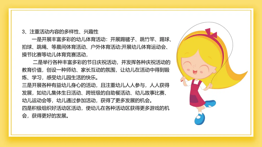 黄色卡通版幼儿园工作总结汇报PPT课件