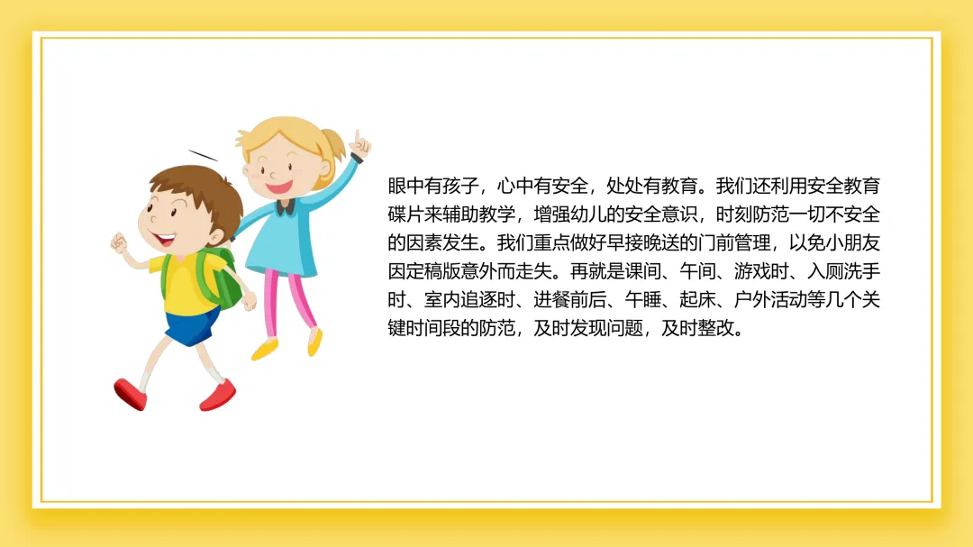 >黄色卡通版幼儿园工作总结汇报PPT课件