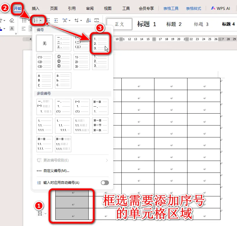 3.在下拉菜单中,选择一个需要的「编号」选项。
