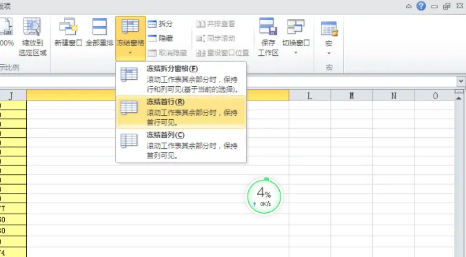 视图 - 冻结窗格 - 冻结首行