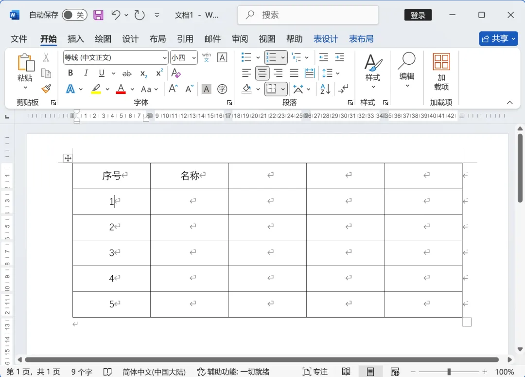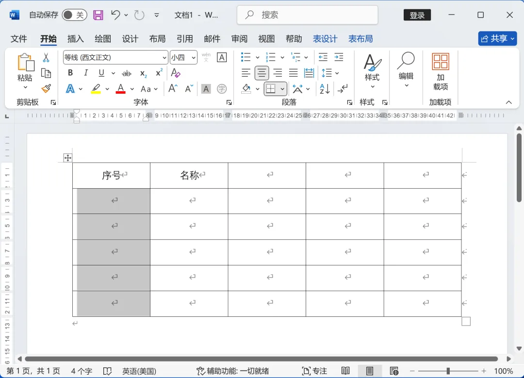 - 选中表格中的任意一个编号(所有编号会自动被选中)。