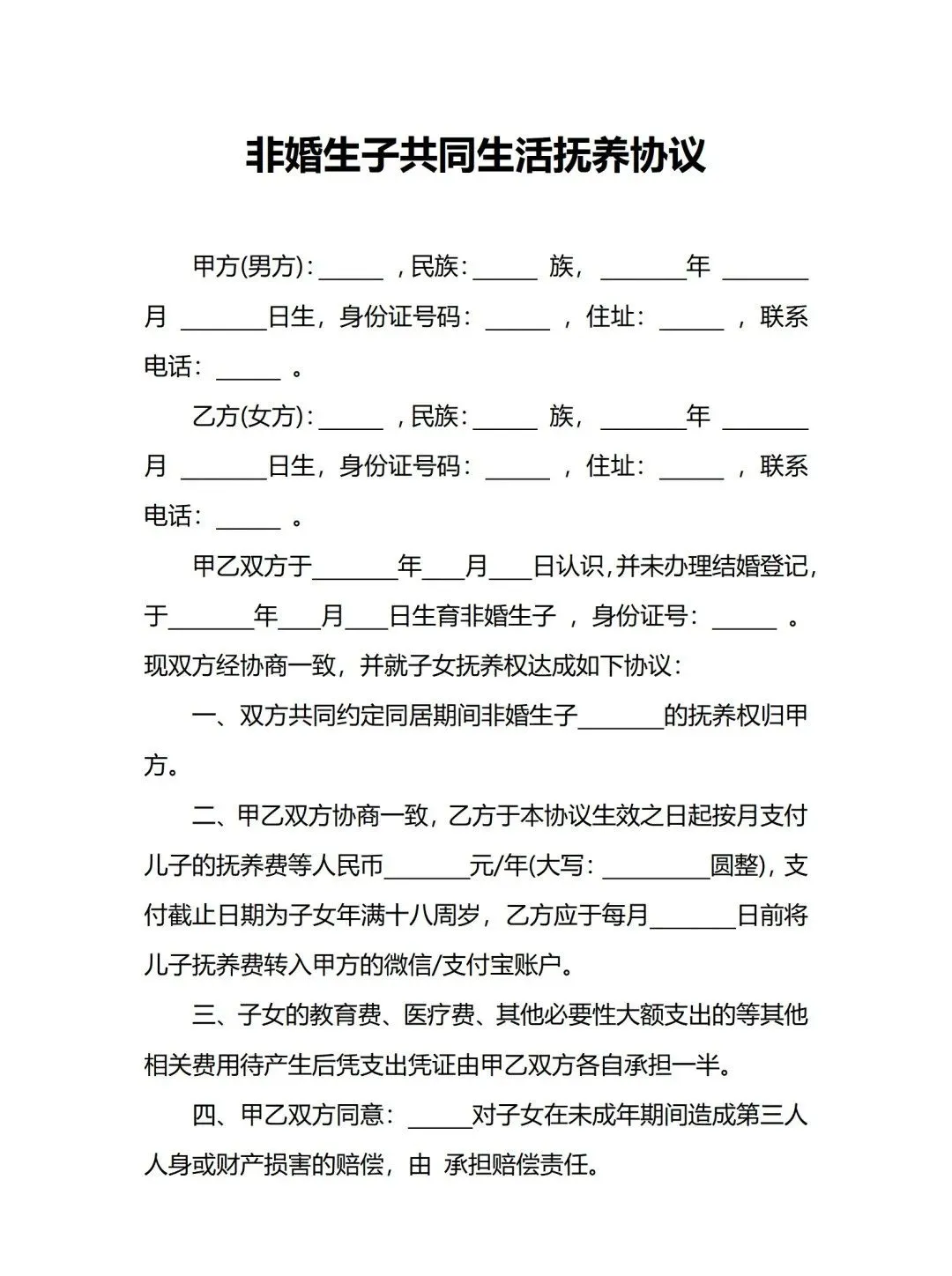 非婚生子、子女成年、经济补偿