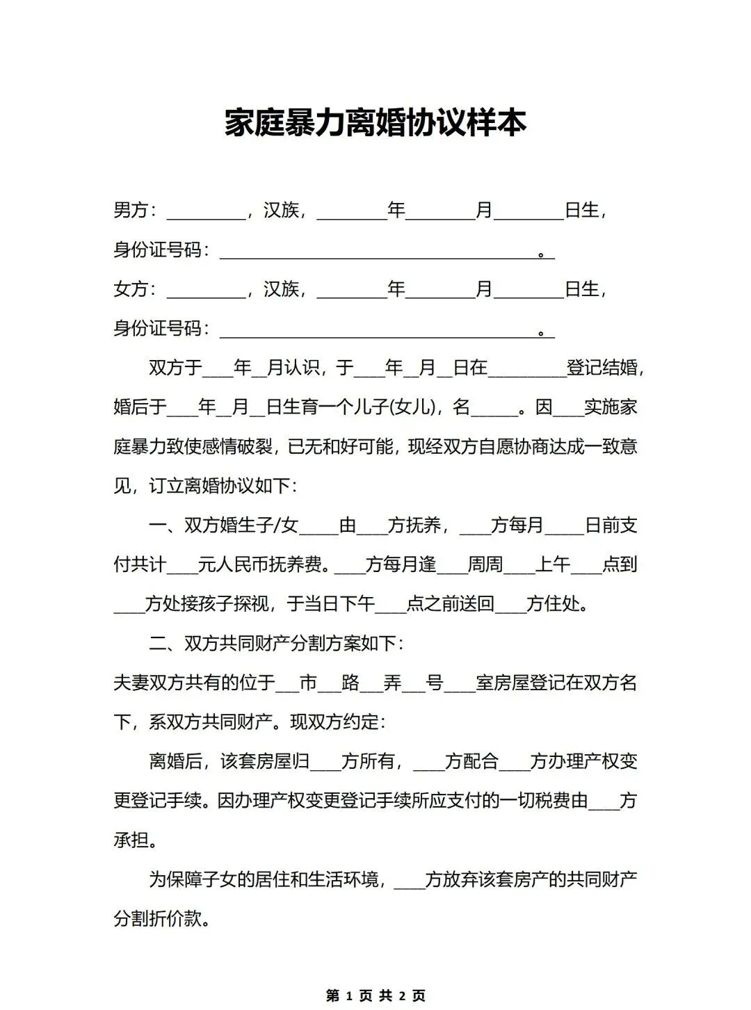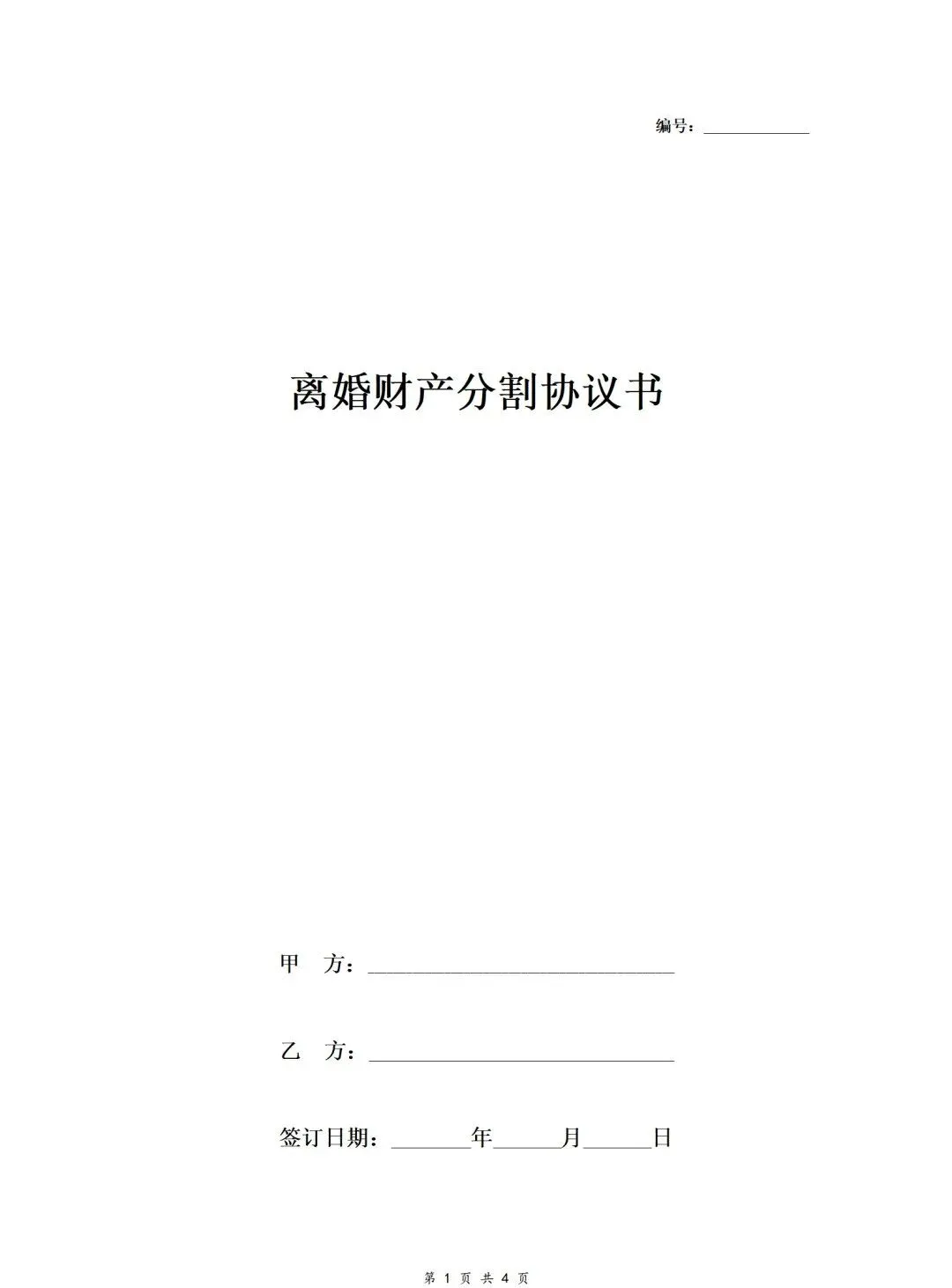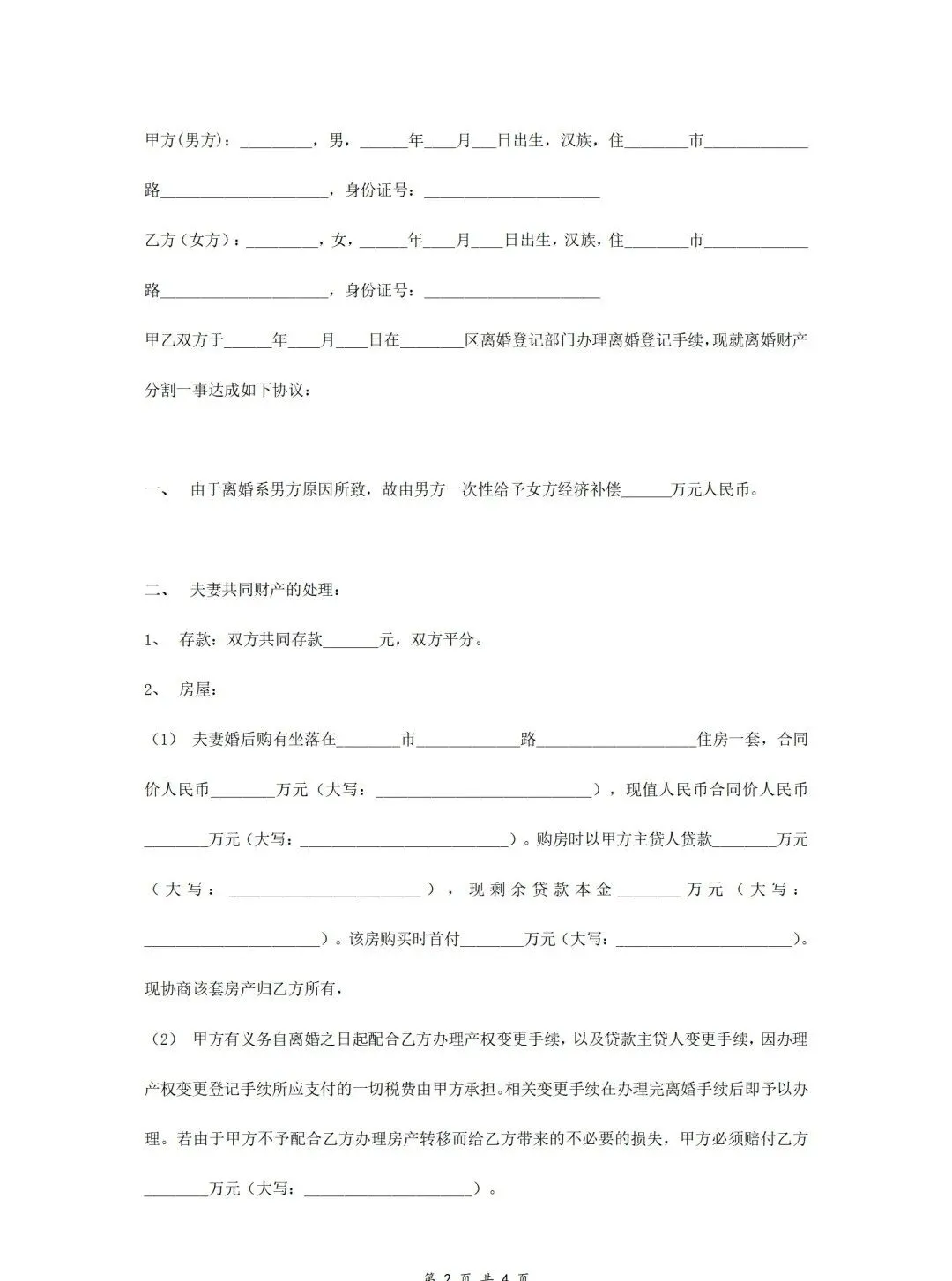 离婚财产分割合同协议书本