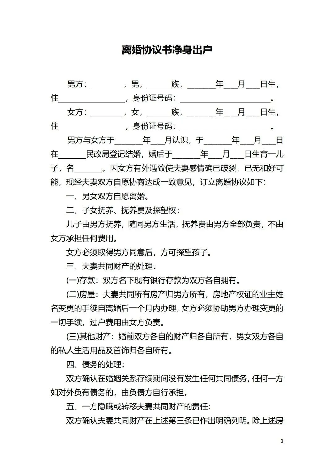 婚内出轨、家庭暴力、净身出户协议