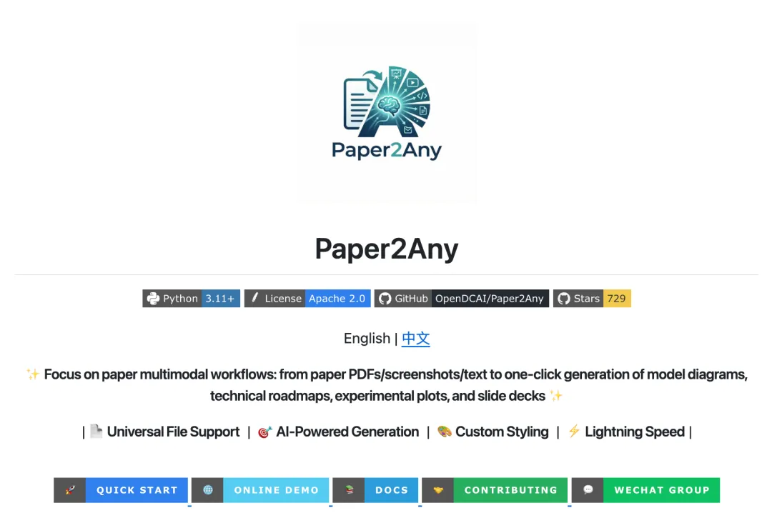 Github官方仓库:https://github.com/OpenDCAI/Paper2Any