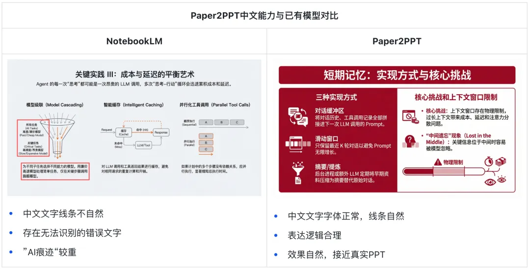 优化中文PPT效果:针对中文PPT的生成,解决了大模型中文字体怪异、表达生硬的问题,减少了“AI痕迹”,符合正式场合的演示需求。