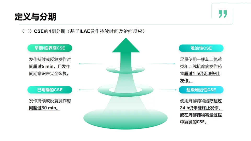 CSE是SE中最危重的亚型,特征为持续的全身性惊厥发作,且患者在发作间期无法恢复意识。
