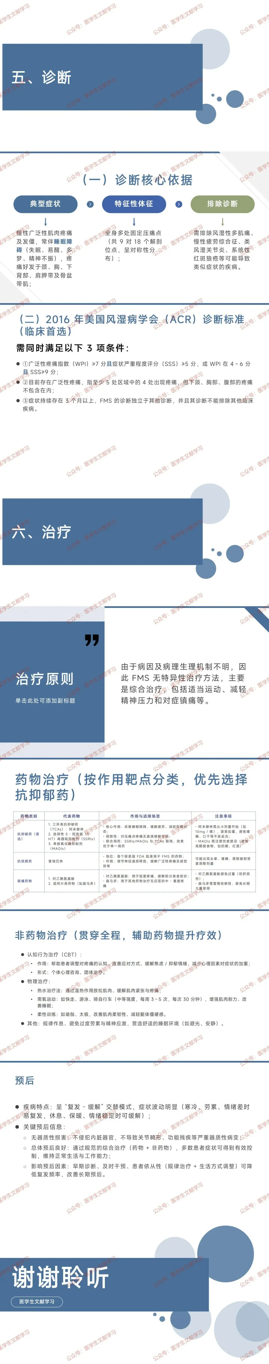 - 继发因素:外伤、骨关节炎、类风湿关节炎、系统性红斑狼疮、肿瘤等疾病可继发 FMS(称为 “继发性 FMS”);无其他疾患则为 “原发性 FMS”。