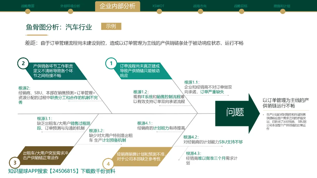 在战略执行监控或运营问题诊断中,表象问题往往错综复杂。因果行为模型(Causal Behavior Model, CBM)是一种强大的根因分析工具,旨在穿透层层表象,揭示问题背后真正的、可被行为改变的驱动因素(根本原因),从而设计出有效的干预措施。CBM的核心逻辑是构建清晰的“因果链”:1. 明确界定待解决的具体问题(如“某区域客户满意度持续下降”);2. 追溯导致该问题的直接原因(如“售后服务响应时间长”、“技术人员技能不足”);3. 不断追问“为什么” ,深挖这些直接原因背后的深层原因(如“响应时间长”是因为“备件库存不足且调配流程繁琐”;“技能不足”是因为“培训体系不完善且缺乏实战演练机会”);4. 聚焦于可改变的行为或条件:识别出哪些是组织或员工可以通过改变政策、流程、资源配置、能力建设或激励机制来施加影响的根本因素(如优化备件供应链IT系统、改革培训体系设计)。CBM分析通常借助鱼骨图(因果图) 进行可视化,其结论直接指向具体的、可操作的改进措施(如升级IT调度系统、引入情景模拟培训),而非治标不治本的表面处理,确保战略执行纠偏和运营优化能击中要害,产生持久效果。