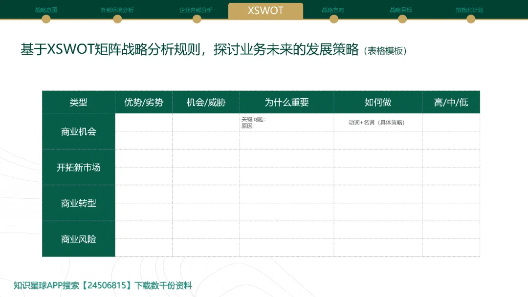 这种结构化交叉能揭示潜在的协同效应和风险应对策略,例如,一家科技公司的强大研发能力(S)遇上新兴市场的政策扶持(O),可推导出加速本地化产品开发的SO战略;而面对核心技术人才短缺(W)和竞争对手挖角加剧(T)的组合,则需制定包含加强人才培养和股权激励的WT防御策略。Cross SWOT分析产出的是多样化的备选战略方案池,为后续的评估与选择提供了丰富素材。