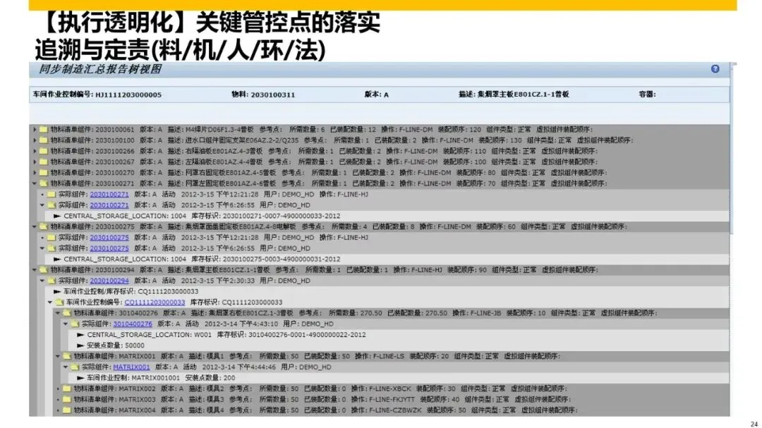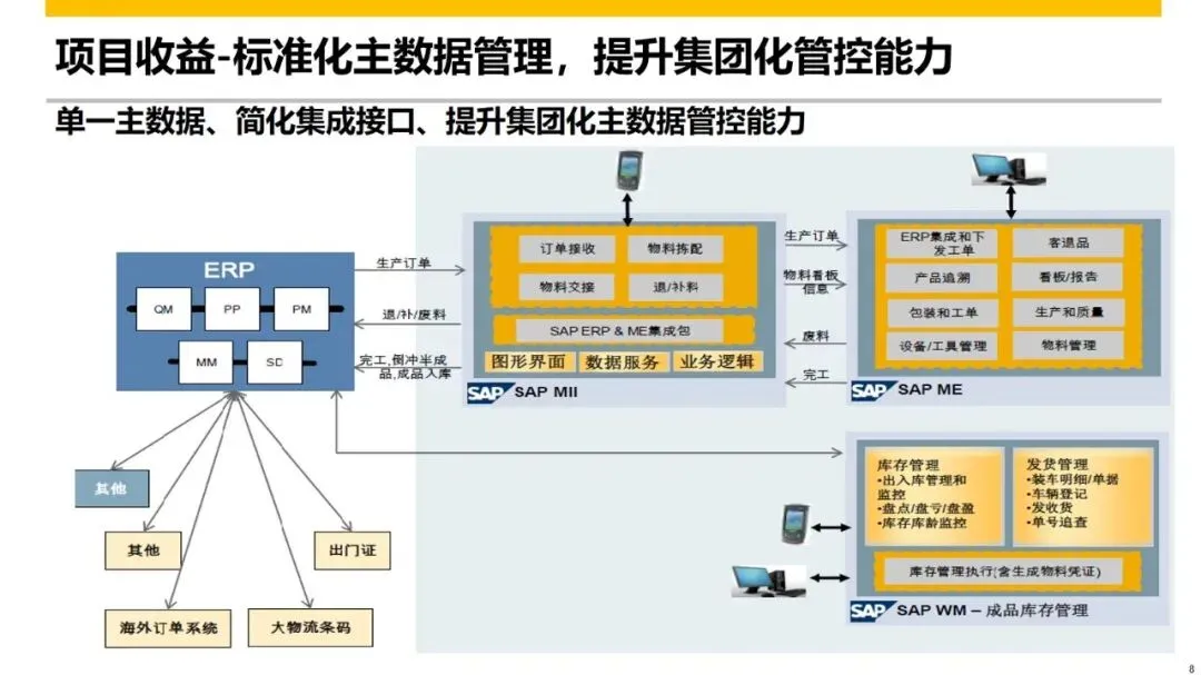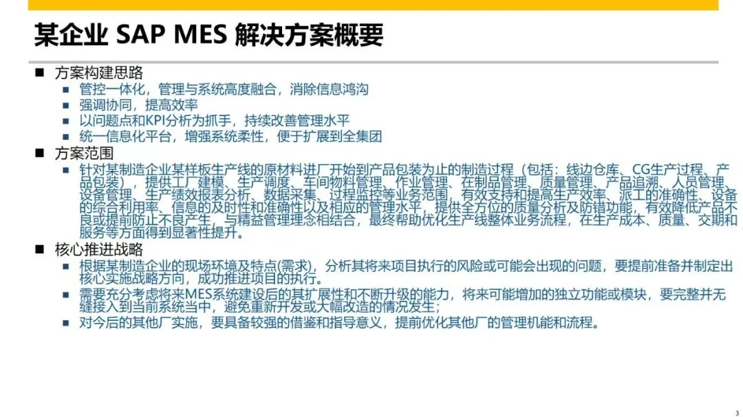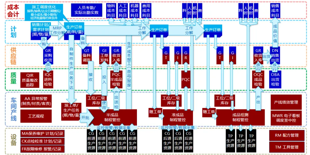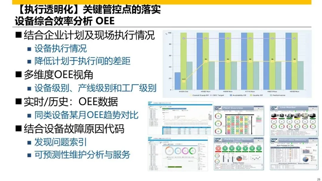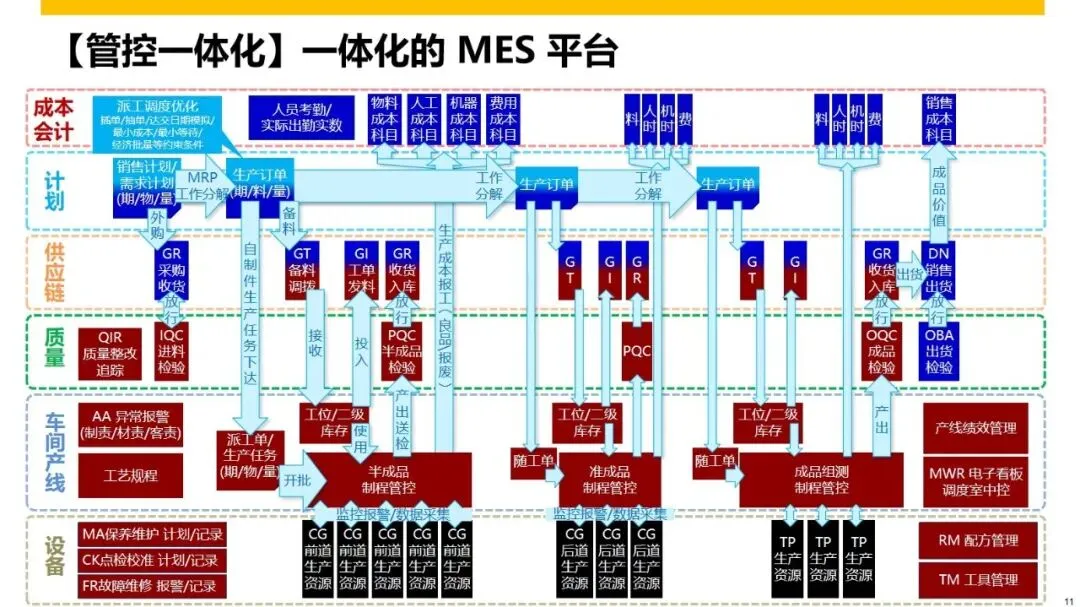 方案以“管控一体化”、“执行透明化”和“数据标准化”为核心,建立了“管控一体化”和“数据标准化”的管理体系。控制与控制集成:构建了跨越过程的协作平台,消除了系统的碎片化,使作业调度更加透明、过程流动更加可控,并具有应用的灵活性和运行维护的效率;执行透明:通过对工厂状态的实时更新,物料工具的精细化管理,质量控制点的落实,可追溯性的强化,以及行动化的执行与电子看板的提醒,实现对生产动态的全面控制;数据的规范化:规范了主数据的获取和整合的规范,保证了设备的高效整合和能量资料的准确收集,保证了资料的流畅流动。