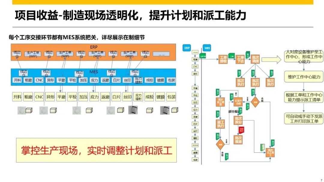 项目的核心价值包括:制造管理控制台可即时显示关键的OEE,产能,良率等信息,并可通过人工和自动化的方法,对制造资源的异常情况进行及时的反馈,使信息更加透明;固化制造管理控制程序,建立“发现问题、剖析原因、支持决策、解决评价、不断优化”闭环体系,提高执行力;MES在开料、粗加工、数控加工等全过程进行精确监控,根据加工中心的产能进行智能调度,使车间更加透明;通过对主数据的规范化管理,实现了统一的整合界面,提高了集团级的控制和管理效率。