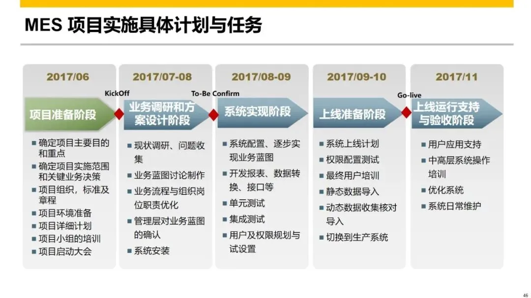项目分为两个阶段进行:第一阶段,浏阳公司CG工厂作为试点工厂,建立规范化的生产管理模式,实现ERP集成和核心业务控制的基本功能;第二阶段,对初步要求进行优化,并将其扩展到整个集团公司,完成整个装置的整合。通过建立健全项目组织结构、项目风险控制、项目人员培训体系,保证项目的顺利实施和长时间的平稳运行,帮助企业实现从规范化管理到生产智能化的转变。