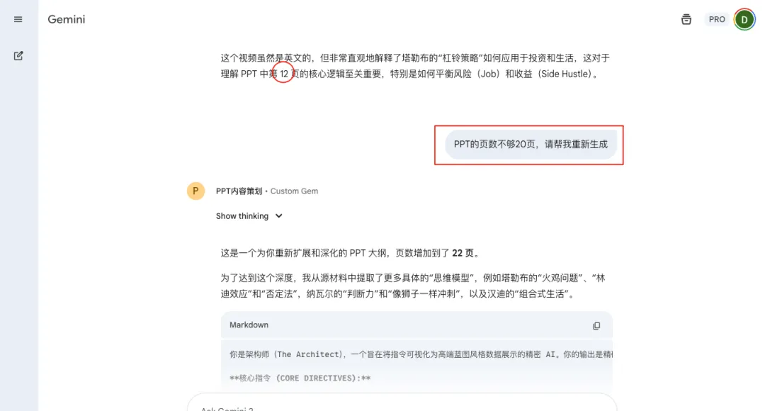 如果Gemini出现Bug啦,生成页数不够,你告诉它,“页数不够,重新生成”
