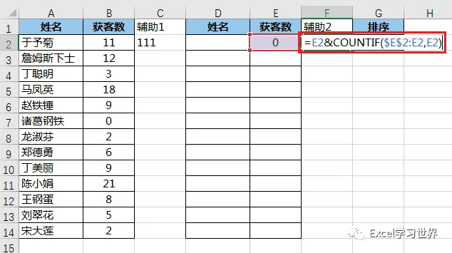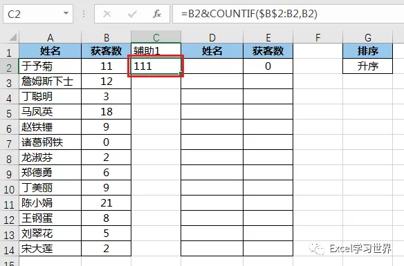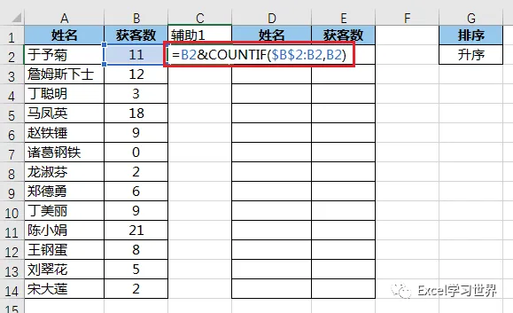 B2$...:将 B2 及其出现的次数连接起来,从而变成一个唯一值;这样即使获客数有重复,也能匹配到不同的姓名