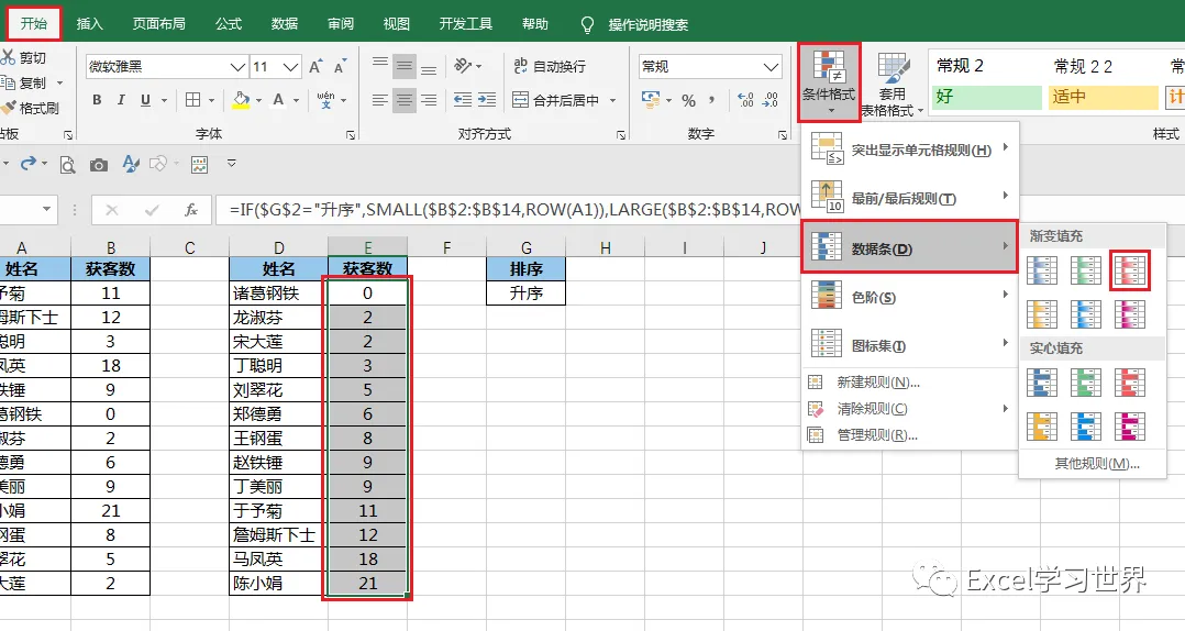 接下来我们再加上数据条,这样可以使得数据差距更加可视化。