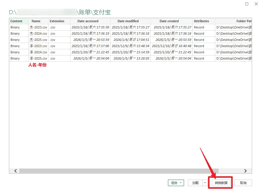 关键 Tips:下载时,按“人名-年份”规则给文件命名(如“小明-2024 支付宝.csv”)。这是后续区分谁花钱多的关键!