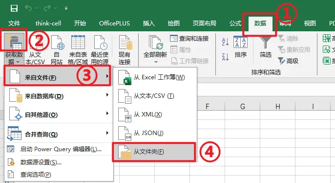 1️⃣ 新建 Excel,点击【数据】-【获取数据】-【来自文件】-【从文件夹】,选择你刚建好的那个账单文件夹。