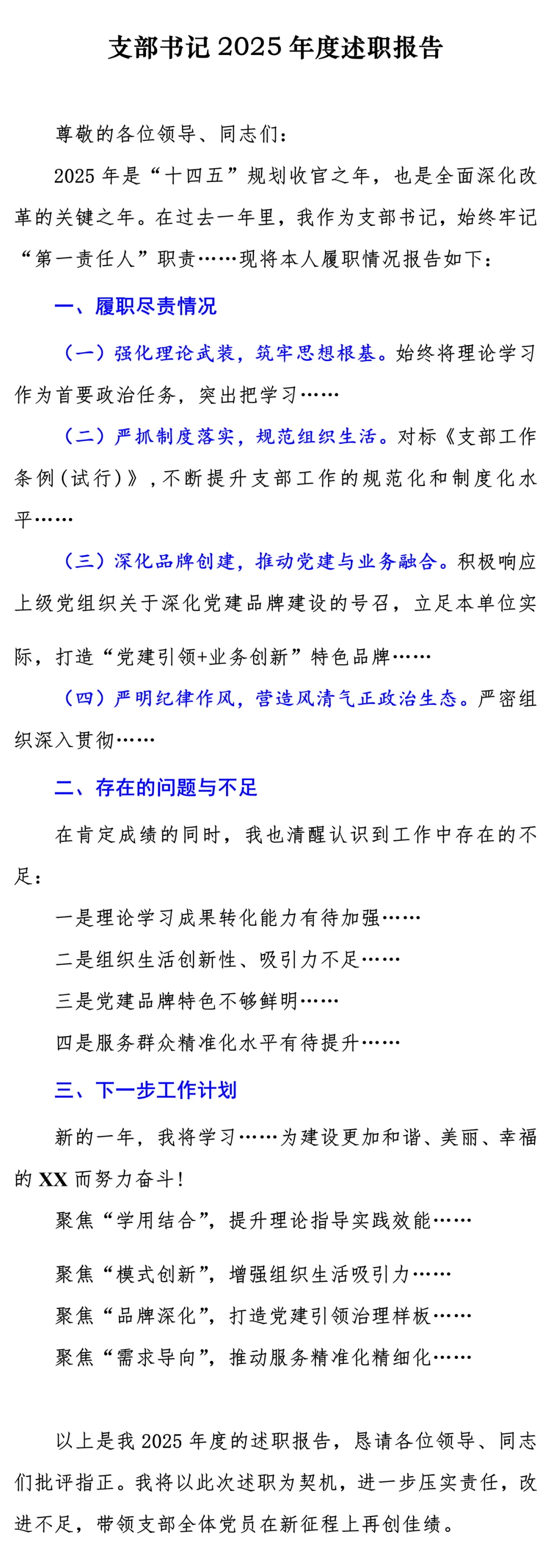 准备述职报告的过程,也是梳理工作、明确方向的过程。我们制作的《支部书记2025年度述职报告》PPT,它可以系统性地协助您整合年度履职的关键信息,内容主要包括工作概述、深入的问题分析以及下一步的工作安排。