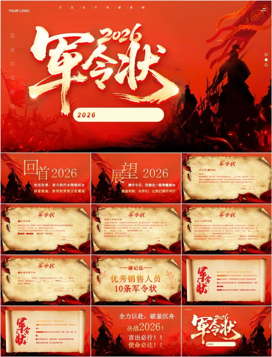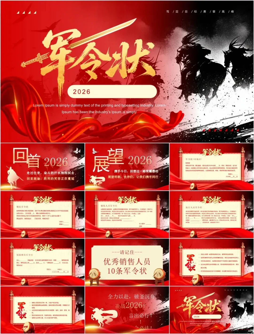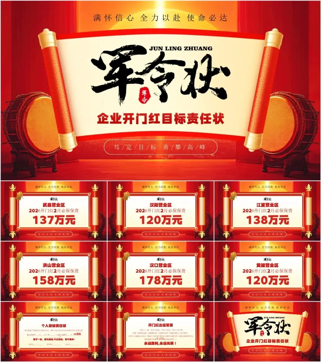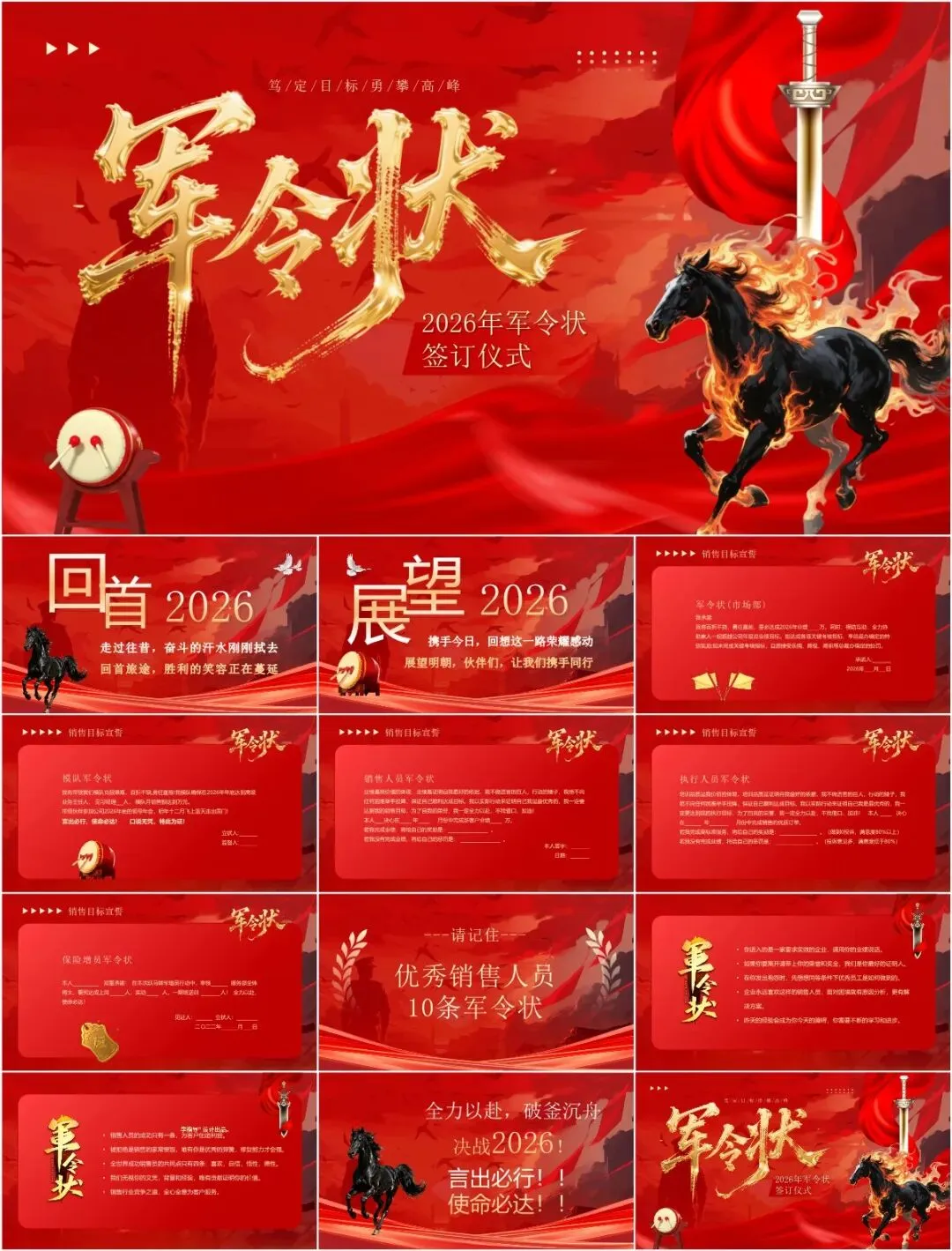 2026年会军令状PPT模板,以下为部分效果预览图,完整版下载方式见文末。