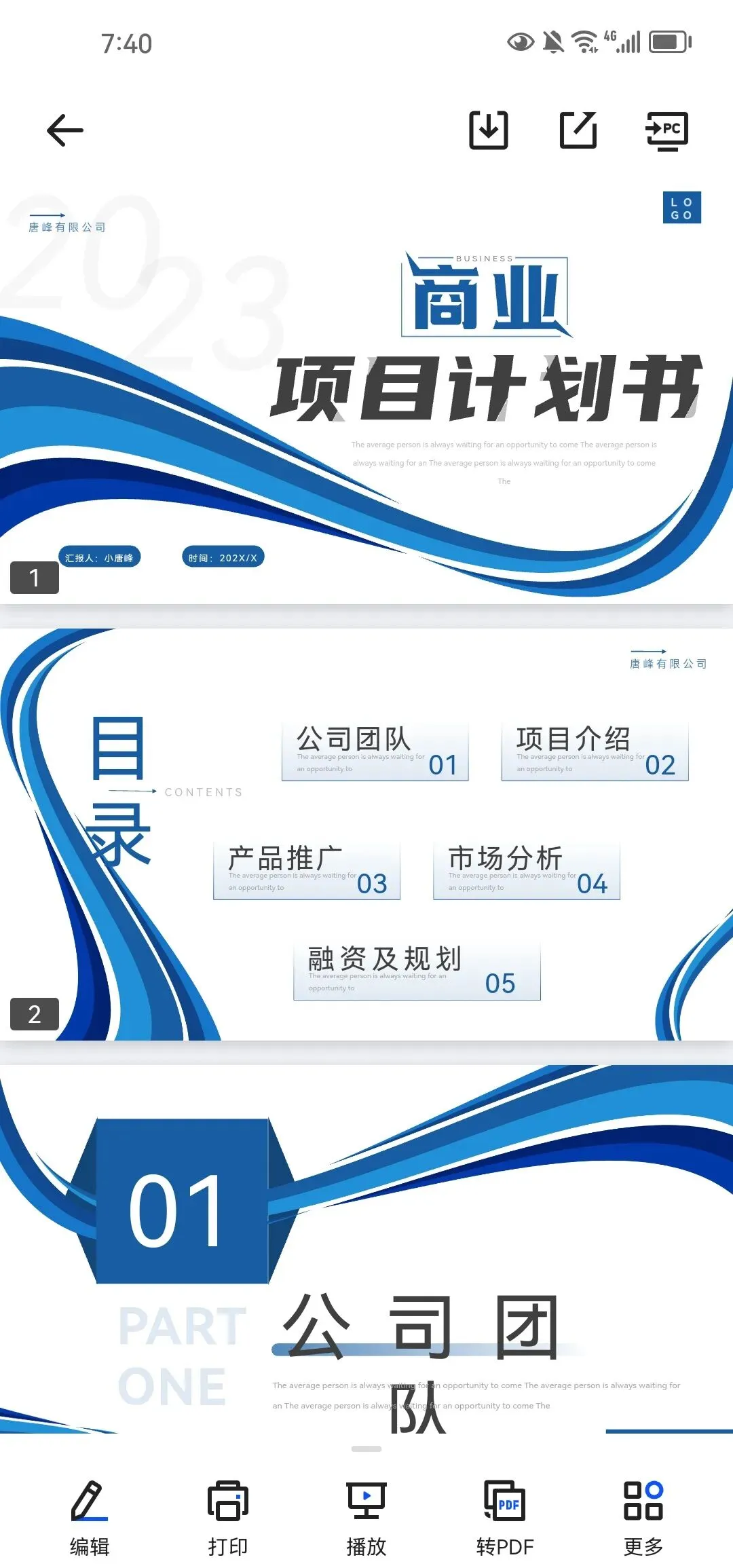 262页蓝色系列PPT模板