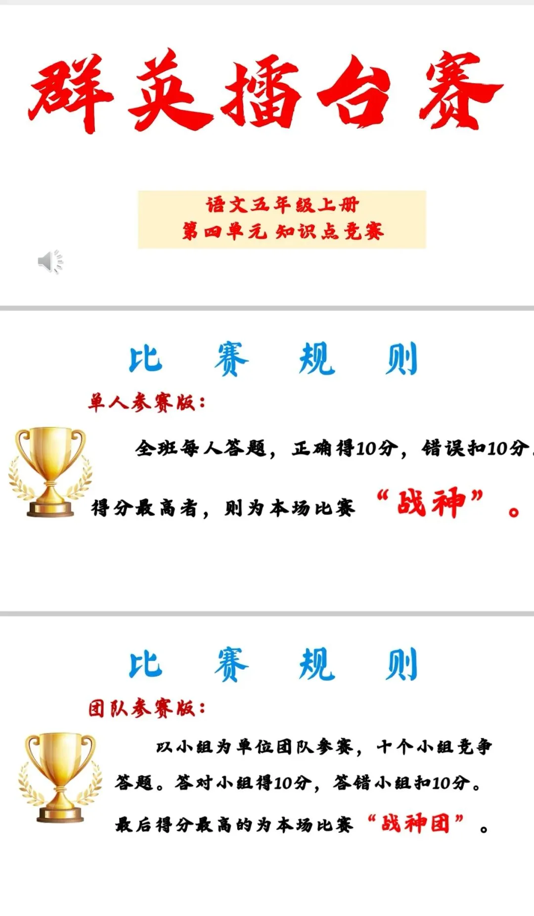 >五上语文期末复习四单元群英擂台赛PPT
