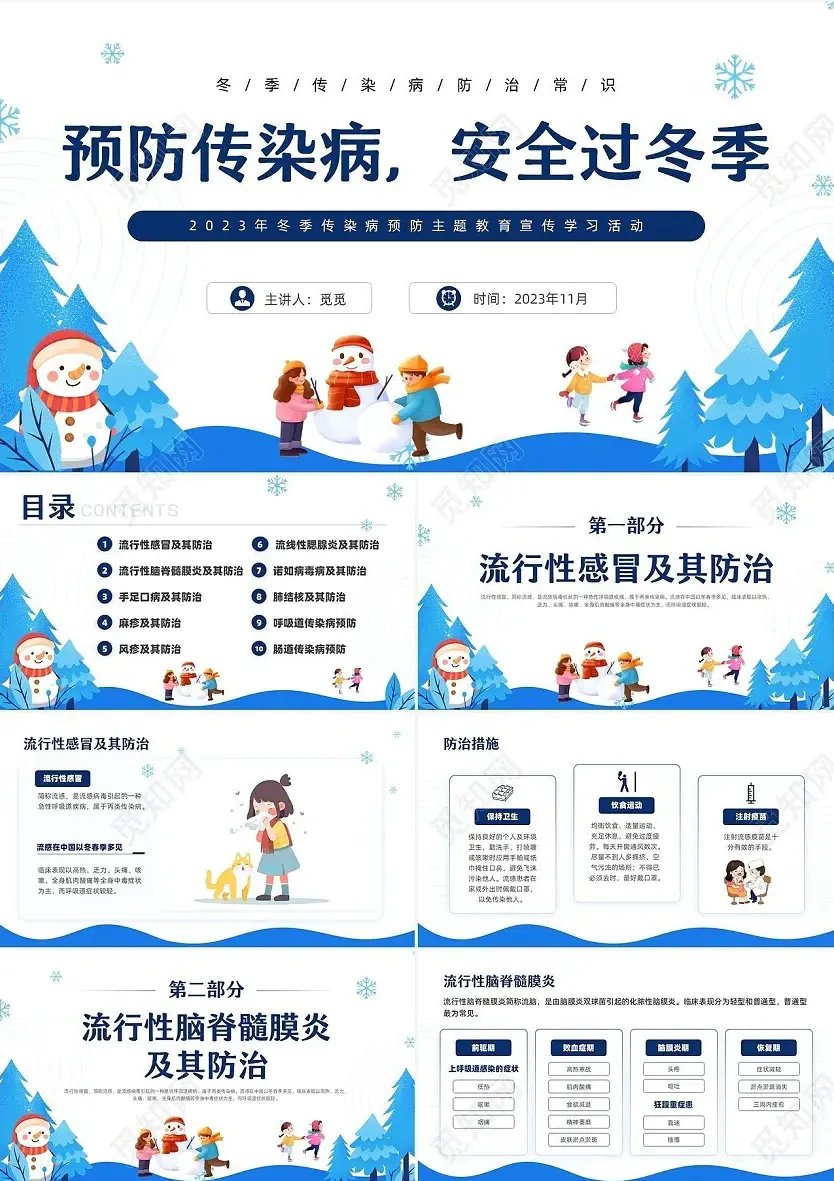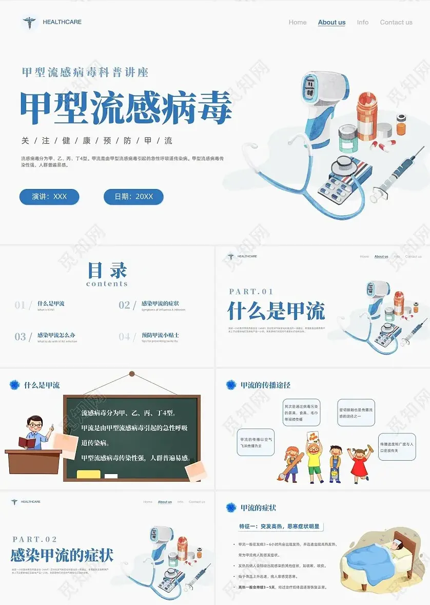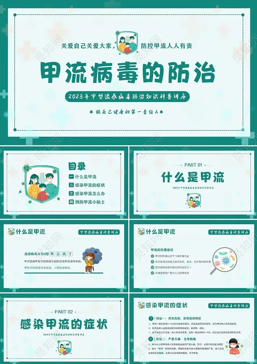 御冬防流 · 10套甲流/流感防护主题PPT模板(免费下载)