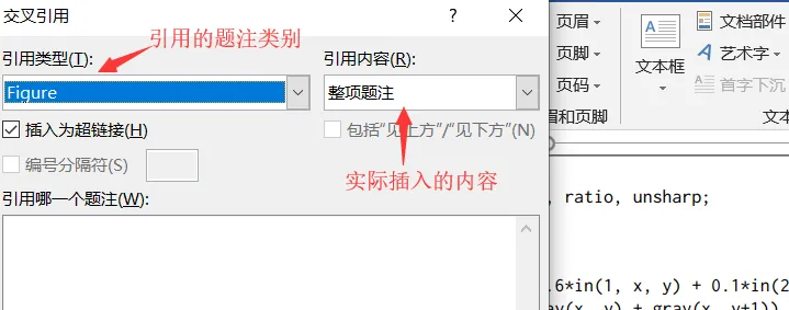 引用内容:该选项可以选择在正文中插入的引用的格式。如 "整项题注" 选项是将整个完整的题注插入到正文的引用位置中,而 "仅有标签和编号" 选项则只会在正文的引用位置中加入对应的标签和标号,而不包括标题。