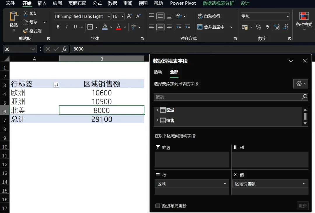 这样我们就通过创建表关系按区域汇总好了销售额了。