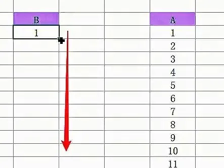 接着光标放到B列第一个数据的右下角,等待光标变黑色实心十字之后,下拖光标