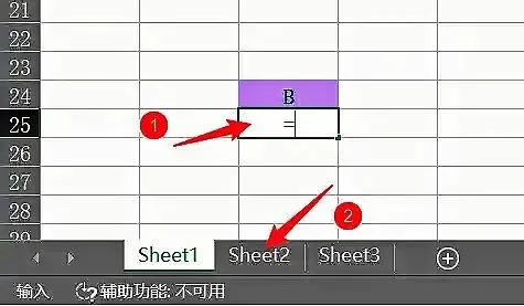 先在B列输入=,点击其他工作表