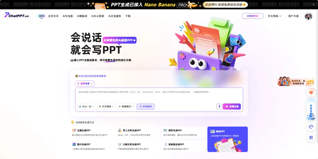 在效率至上的时代,PPT制作不应再是“耗时、费力、低价值”的重复劳动。ChatPPT通过“AI内容生成+40万+专业模板+全免费政策”的组合,重新定义了PPT制作的效率标准: